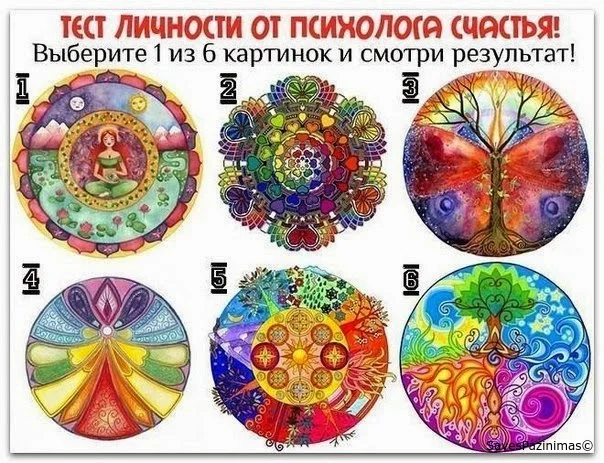 Этот психологический тест в картинках поможет Вам определиться со своим типом личности. Выберите 1 из 6 картинок, которая Вам нравится, каждая картинка характеризует различные личности.